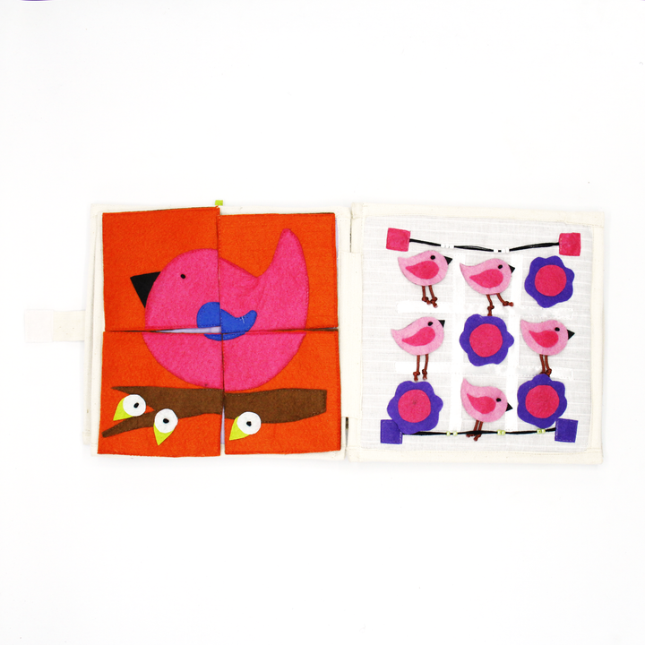 This tactile activity book is full of detacahable critters, numbers, birds and more to help your growing child learn early arithemetic, assist with speech skills and idenitfy colors, shapes and more. A unique gift for children between the ages of 0 to 5, it is a sustainable eco-friendly toy that can be passed down as a family heirloom.This tactile activity book is full of detachable critters, numbers, birds and more to help your growing child learn early arithmetic, assist with speech skills and identify colors, shapes and more. A unique gift for children between the ages of 0 to 5, it is a sustainable eco-friendly toy that can be passed down as a family heirloom.