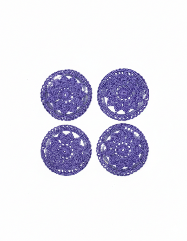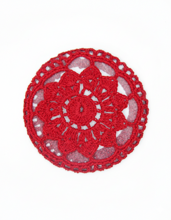 This unique glass coaster features a clear, sturdy glass base, offering durability and a sleek, modern look. The coaster is elegantly covered with a hand-crocheted design, crafted from soft yarn. The crochet cover showcases intricate patterns, adding a charming, textured touch to the piece. It not only protects surfaces from drink rings and condensation but also brings a cozy, artisanal vibe to any table setting. The blend of transparent glass and delicate crochet makes this coaster both functional and visually appealing. Perfect for both casual and formal occasions.