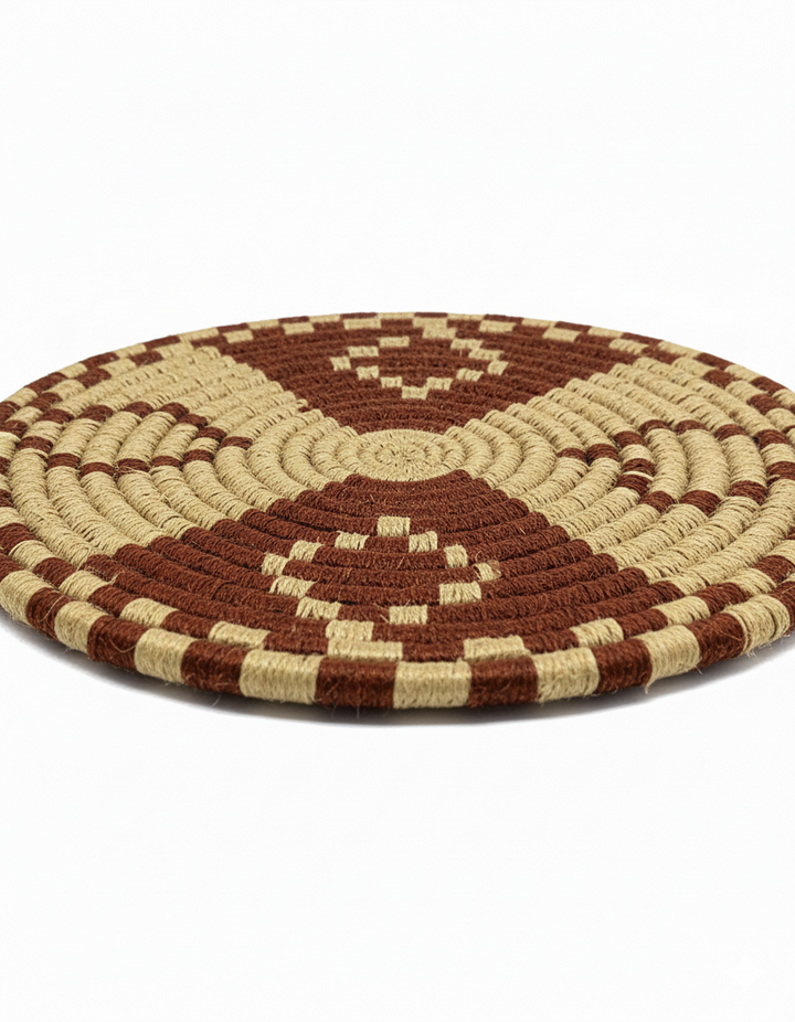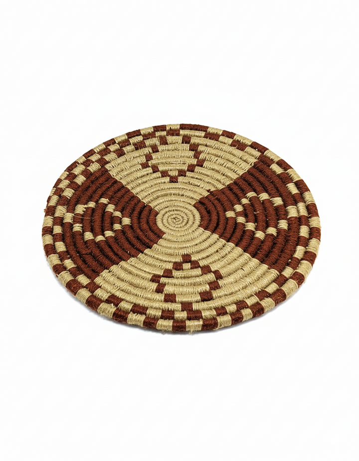 Date Palm Trivet is crafted from sustainable khajoor leaves. Designed to protect your surfaces from hot pots and pans, its natural texture and chic design add earthy charm to any kitchen or dining setup. Durable, heat-resistant and stylish.